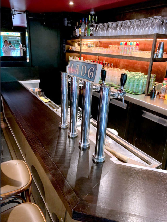 Essence Utilisé : Chêne teinté Ébène – «Georges Café» – 4 Rue de la Huchette, 75005 Paris