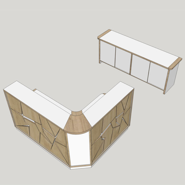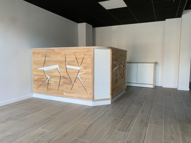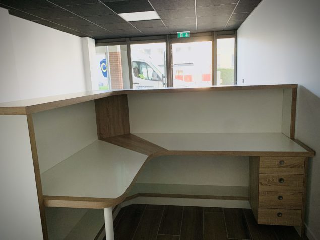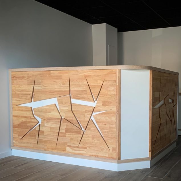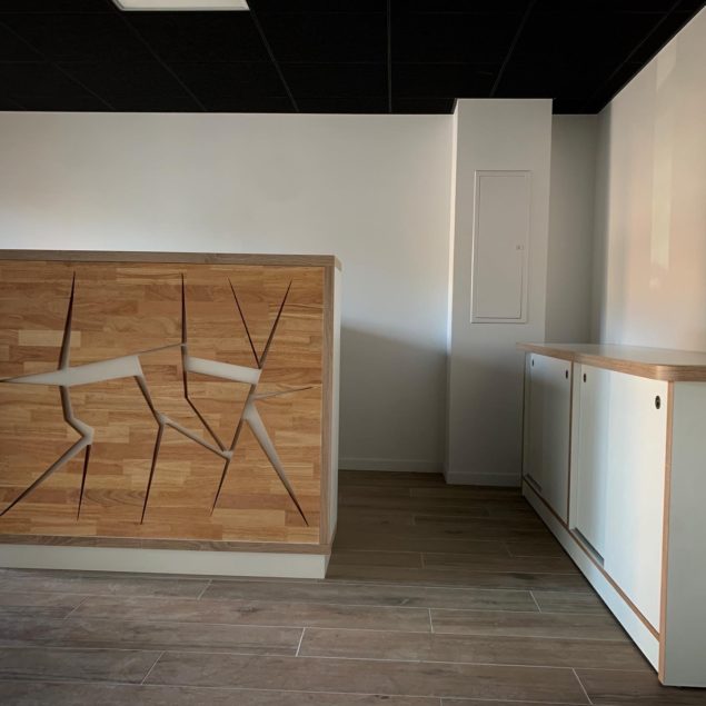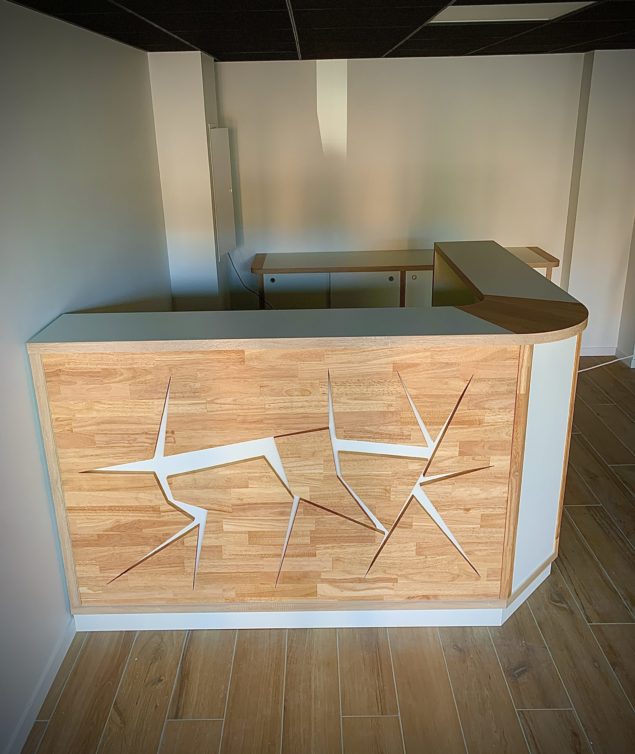 Installation et pose d’une banque d’accueil et de son bahut: