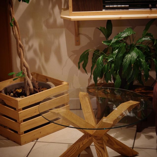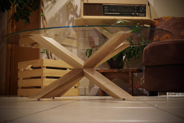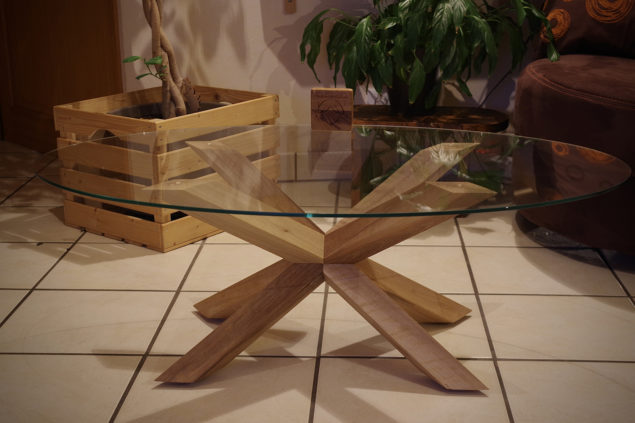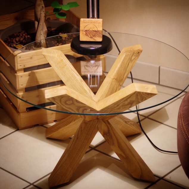 Table basse piétement en croix avec pied réglable verre trempé de 6mm